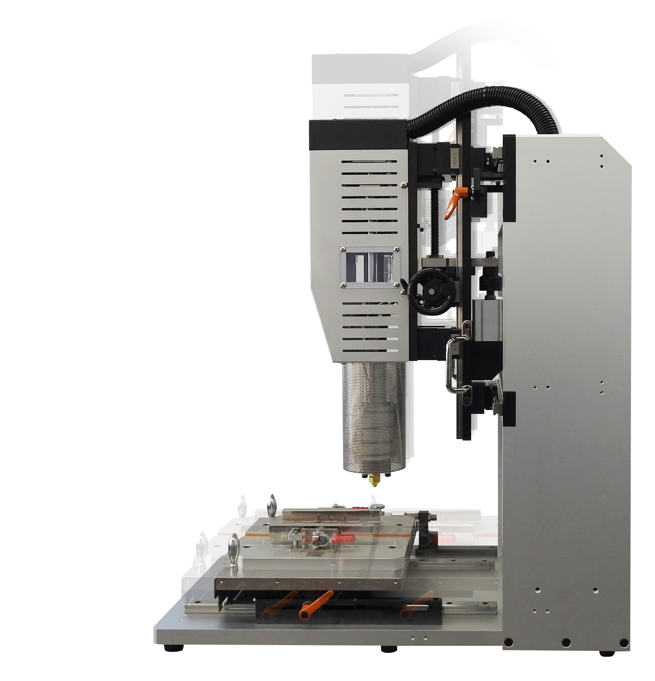 - 卓上で、型締め力100tクラスと同等の70ccまで吐出可能